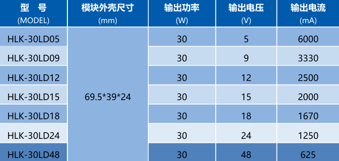 参考资料:海凌科30W(LD)系列电源模块规格书